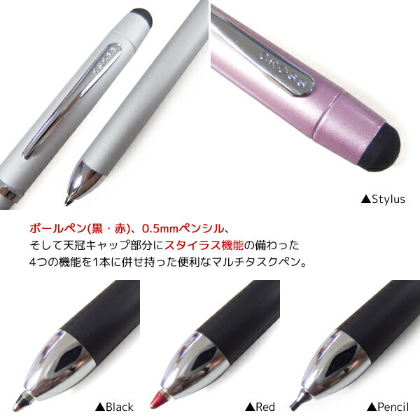 【1000円OFFクーポン配布中】【あす楽対応可】ボールペン 名入れ クロス CROSS テックスリー プラス TECH3+ 複合筆記具 複合ペン マルチペン 多機能ペン ボールペン黒・赤+ペンシル0.5mm+スタイラス 全4色 AT0090 プレゼント クリスマス