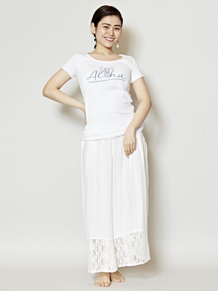 アロパフラTOP(Lサイズ) Kahiko 公式 ハワイアン4CA-8112普段使いもしやすいシンプルなアロハ文字とパイン柄。伸びの良いフライスを使用したフラレッスン用Tシャツ。